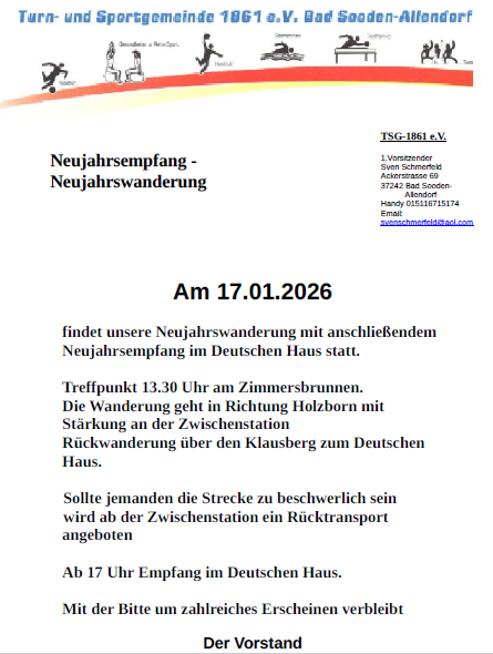 Darüber hinaus wünscht die TSG Bad Sooden-Allendorf allen Mitgliedern und Freunden ein gutes, gesundes und sportliches Jahr 2025!